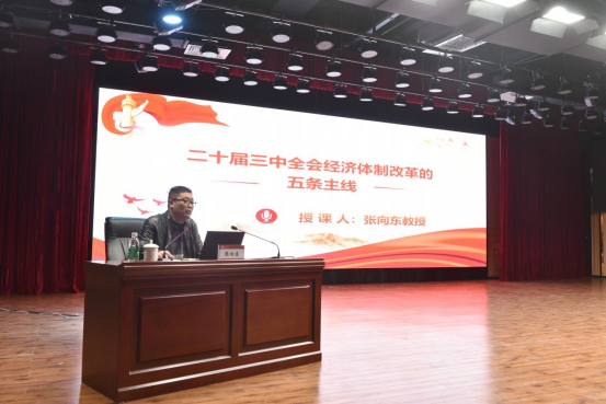 河南省教育厅党的二十届三中全会宣讲团成员、河南大学副校长、博士生导师张向东受邀作题为《二十届三中全会经济体制改革的五条主线》辅导报告。