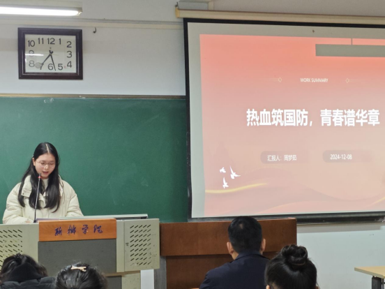 王仁举在总结发言中首先对各位同学的演讲表示肯定与赞赏,接下来,他围绕国防教育的重要意义,从坚定理想信念、厚植爱国主义情怀及如何做新时代强军青年三个方面进行详细阐述。他指出,人民军队始终是党和人民可以信赖的英雄军队,各位同学要热爱祖国、热爱人民军队。最后,他勉励各位同学从自身做起,提升自身综合素质,为社会发展努力,为国家富强奉献!