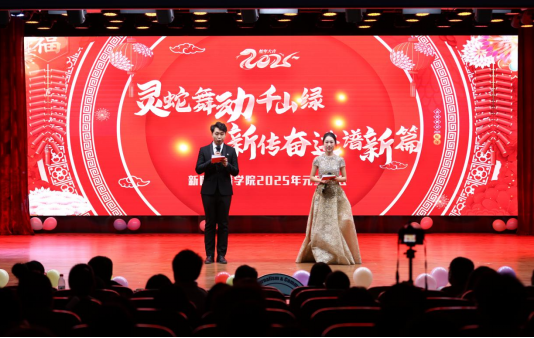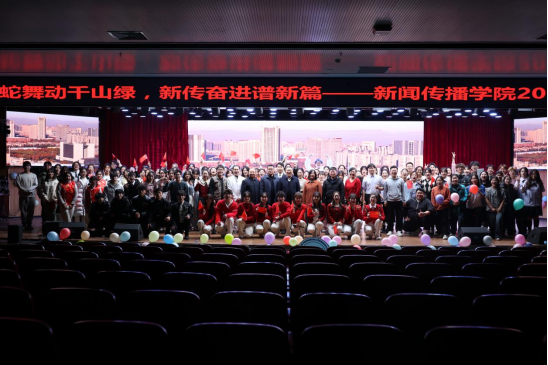 “灵蛇舞动千山绿,新传奋进谱新篇”,12月17日晚,新闻传播学院在图书馆一楼文化艺术中心举办2025年元旦晚会。mg4355cc线路检测纪委书记、监察专员鲍晋选,mg4355cc线路检测副校长韩辉,mg4355cc线路检测党委学工部部长、学生处处长王坤,新闻传播学院全体领导班子,学院及其他职能部门和兄弟学院的部分师生500余人,共同参加了此次活动。