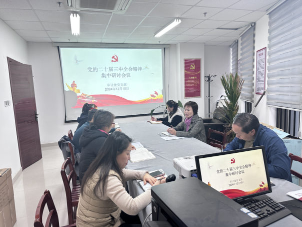 按照《中共mg4355cc线路检测委员会关于深入学习宣传贯彻党的二十届三中全会精神的实施方案》和机关党委《关于进一步深入学习贯彻党的二十届三中全会精神的通知》文件精神和工作要求,12月10日下午,审计处党支部组织全体人员在719室研讨学习二十届三中全会精神,会议由党支部书记赵素琴主持。