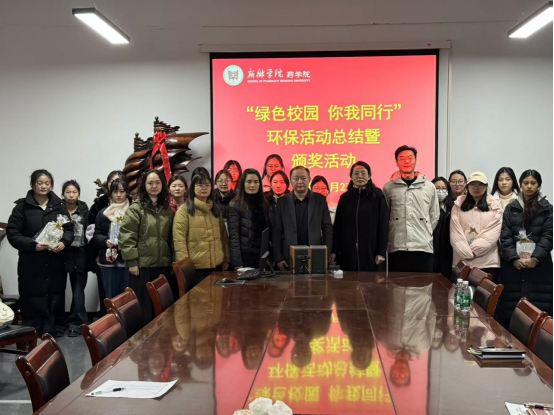 12月27日,于药学院会议室开展了“绿色校园 你我同行”环保主题活动总结暨颁奖活动,药学院党委书记骆云飞、党委副书记韩爱慧以及获奖学生参与了此次颁奖活动。骆云飞对参与活动的学生提出了肯定,希望同学们能够再接再厉,积极参加公益环保活动。韩爱慧强调了此次活动对于改善校园环境卫生的重要意义,希望同学们将绿色理念付诸实践。活动最后,骆云飞与韩爱慧为获奖学生颁发了奖品并进行了合影留念。