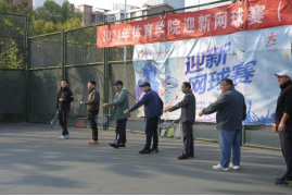 为弘扬体育精神,使新生能更快地融入新环境,增进同学之间交流,同时向学校75周年校庆献礼,体育学院于10月22号在西区网球场举行校庆迎新网球赛开幕式。开幕式现场气氛热烈,体育学院的师生们齐聚一堂,共同见证这一激动人心的时刻。参加开幕式的有体育学院党委书记刘瑜、院长李永刚、党委副书记黄远伟、副院长杨卫华、学工办主任冯毛弟、体育学院陈启航老师、王思源老师、张铮老师、王军朝老师、全体参赛人员、裁判员、志愿者及工作人员。
